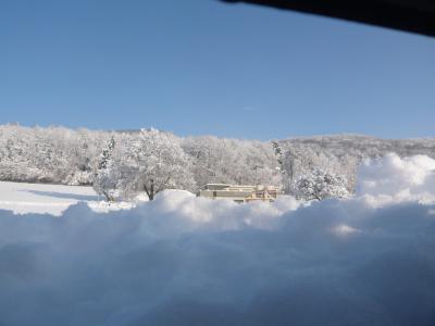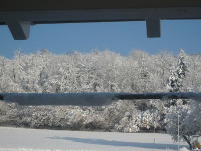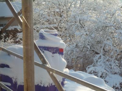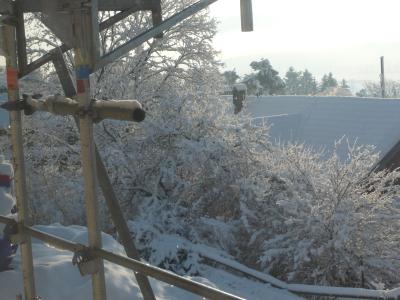 Jetzt steht auch das Haus unserer Nachbarn. Ist doch ganz schön gross.....